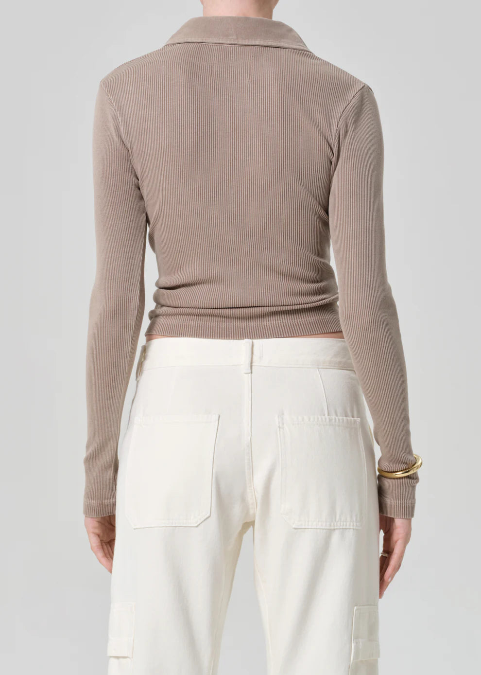 A modern nod to a vintage classic, the Brea 60’s Polo is crafted from ultra-soft, supportive ribbed cotton with a comfortable midweight feel. The long-sleeve silhouette and collared neckline bring effortless structure—perfect tucked into high-rise denim or layered under a blazer for refined ease.