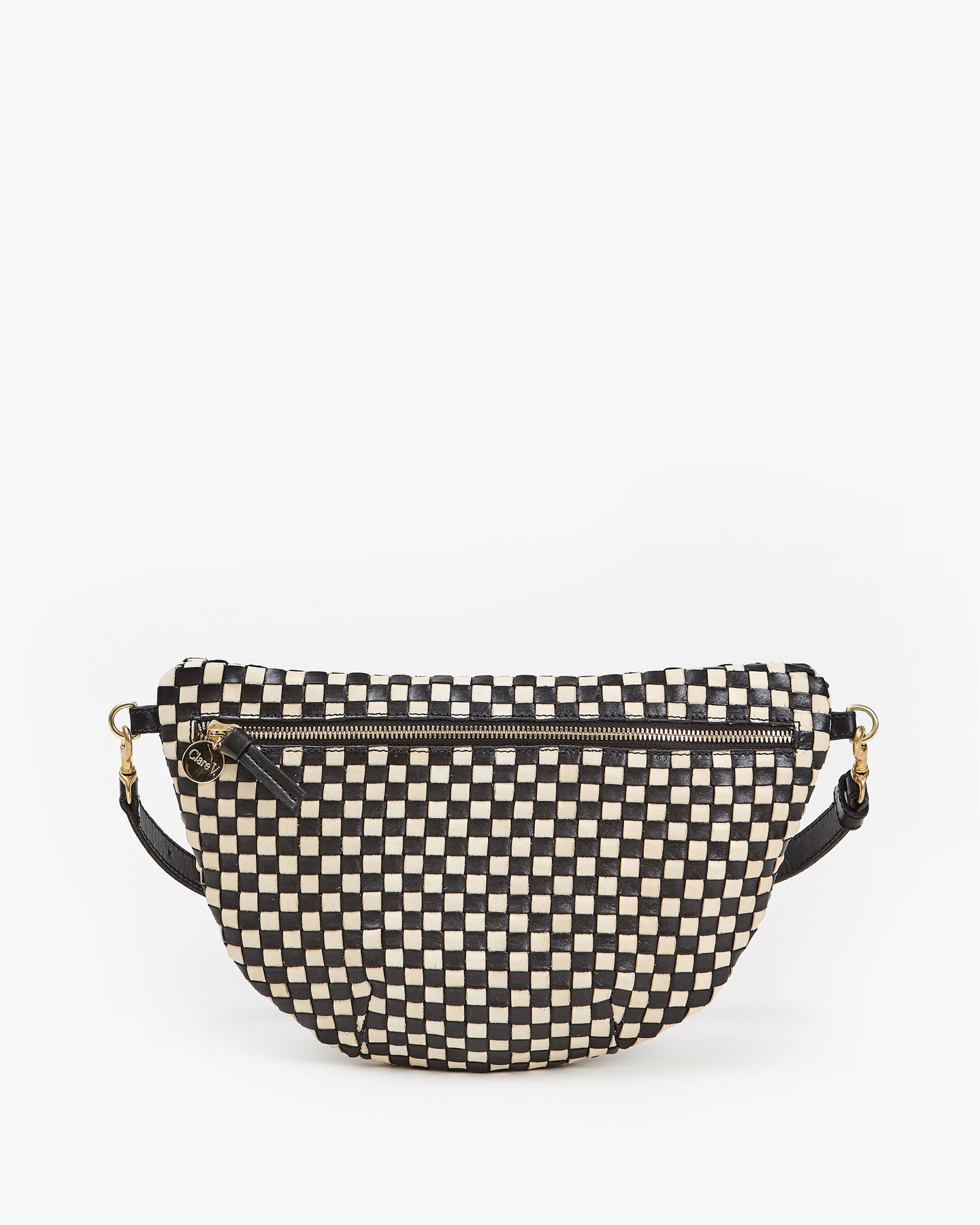 Clare V - Grande Fanny Black & Cream Woven Checker